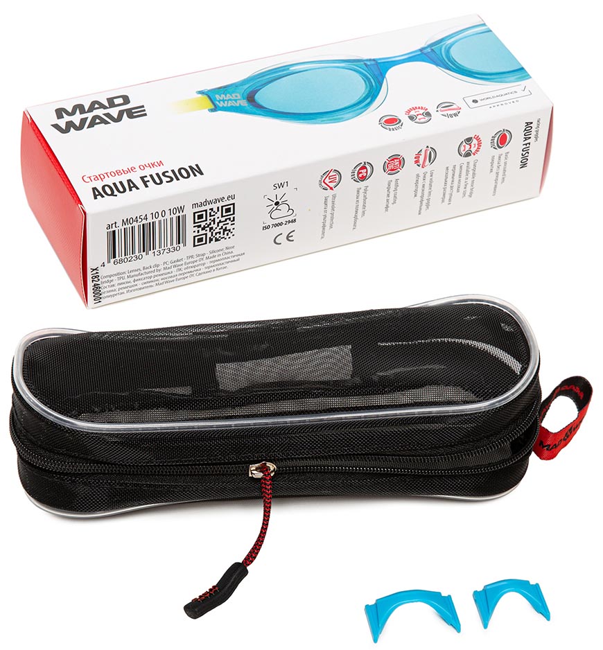 Очки имеют в комплекте три сменные носовые перемычки. С их помощью можно точнее подогнать очки под индивидуальные особенности лица. Двойной силиконовый ремешок легко регулируется с помощью специальной клипсы и надежно фиксирует очки на голове. Линзы из поликарбоната с UV-защитой.