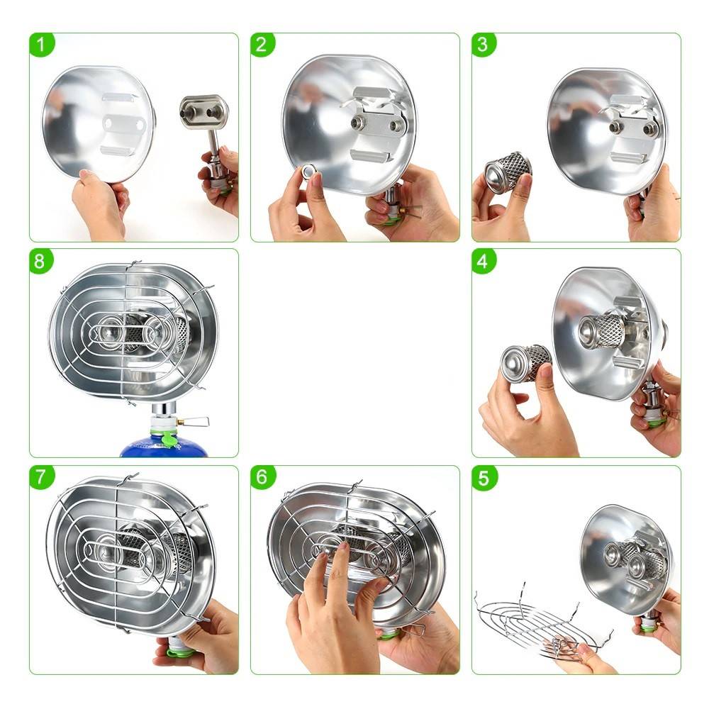 Размеры газового обогревателя не превышают 21,5 x 20 x 11 сантиметров, при весе 470 грамм. Нагреватель достигает мощности до 1050Вт. Высокопрочные пластины из медного и алюминиевого сплава держат температуру и равномерно распределяют тепло по всей поверхности.