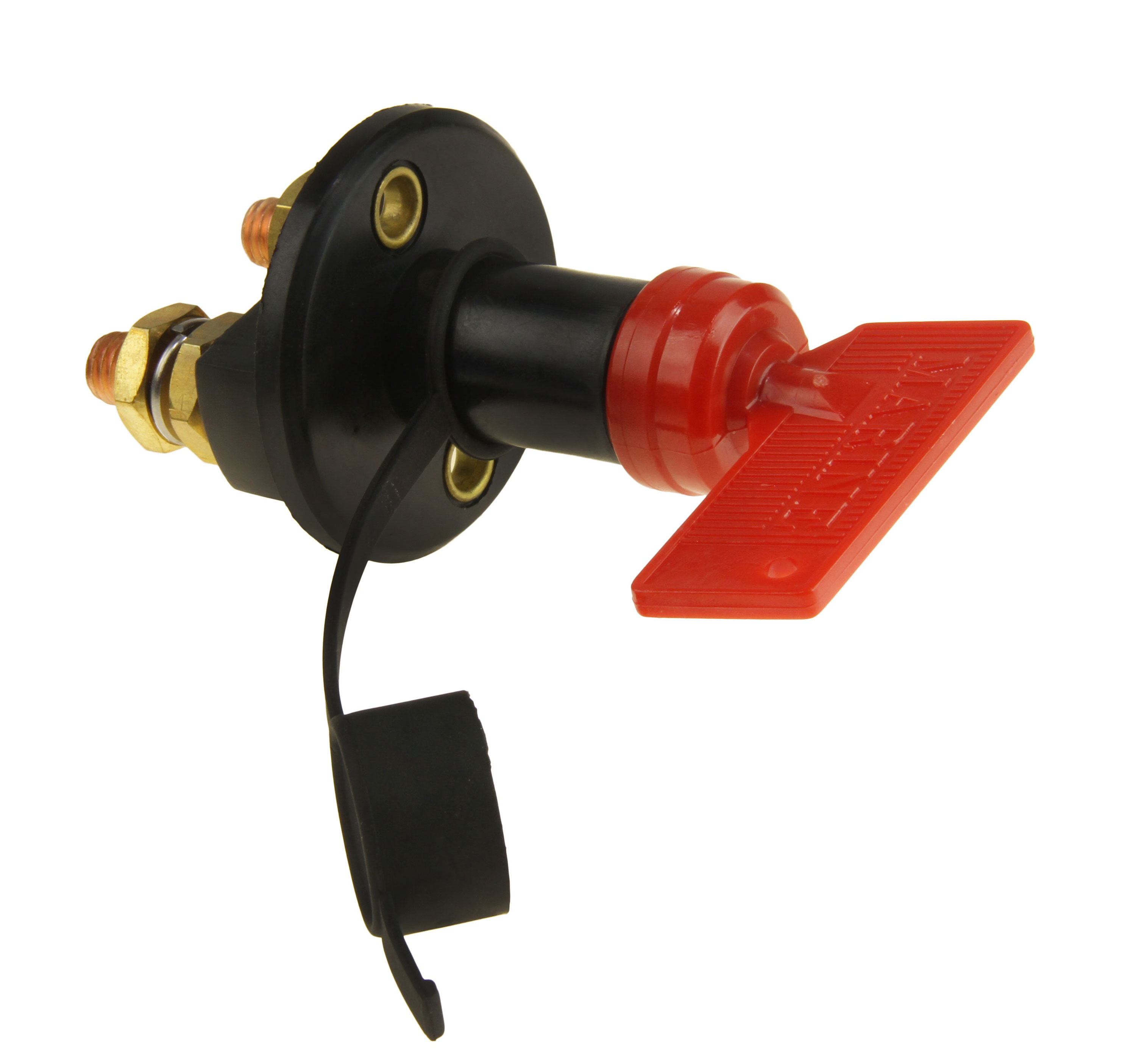 Выключатель массы в пластиковом корпусе с защитным колпачком и съемным ключом.