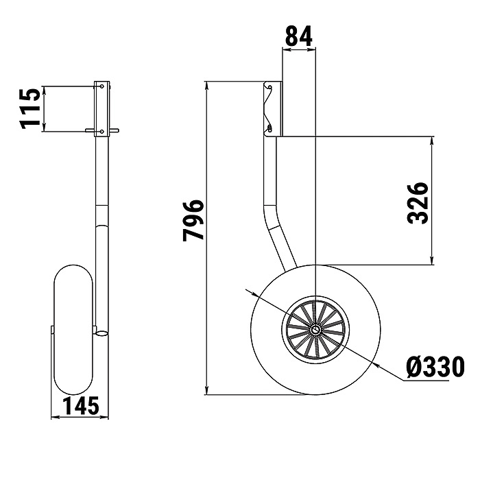 Крепеж, входящий в комплект, позволяет устанавливать колеса на транец толщиной до 32 мм !