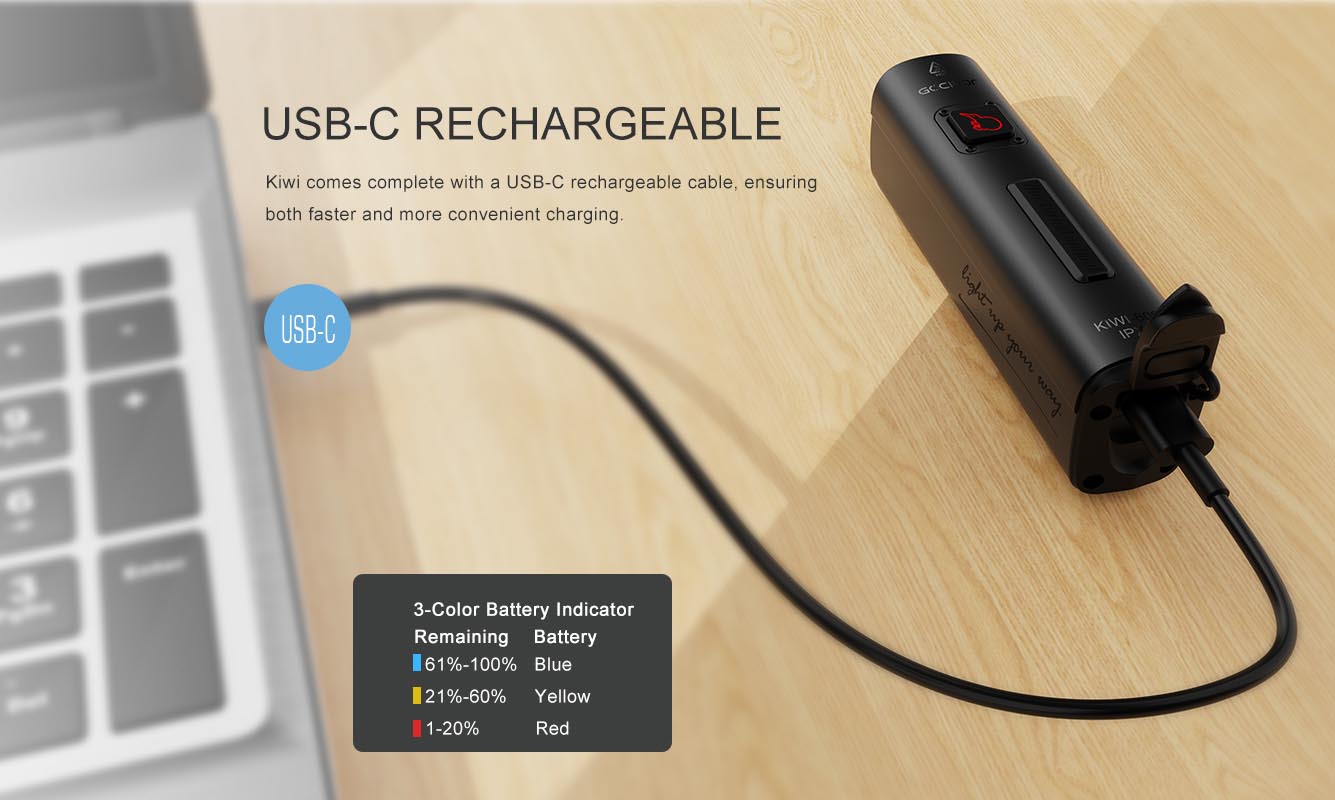 В комплекте идет шнур USB / USB-С для зарядки и поворотный крепеж на руль велосипеда.