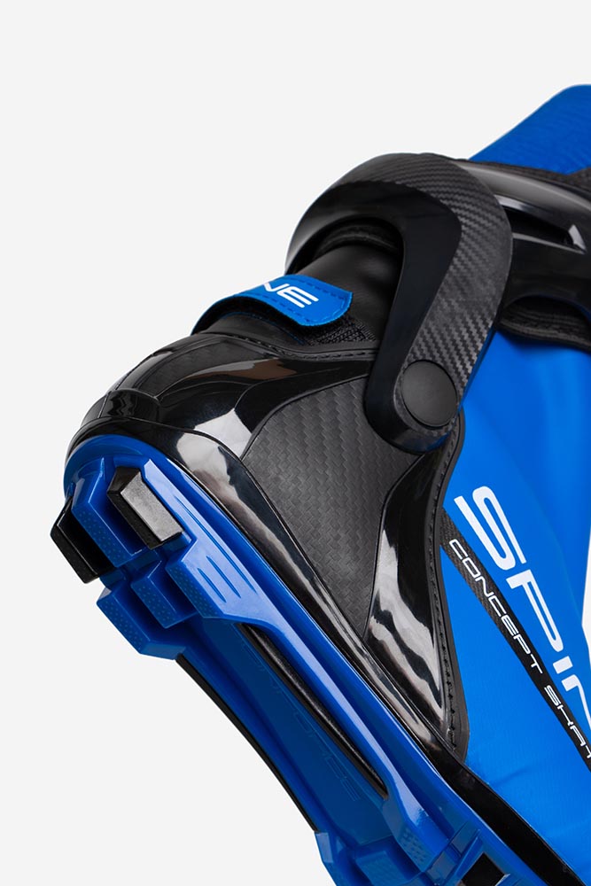 • Жесткая промежуточная стелька (торсионная пластина) исключает скручивание подошвы и улучшает фиксацию ботинка в креплении лыжи, одновременно создает дополнительную реактивную силу при толчке.
